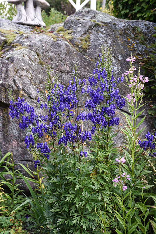 A highly toxic perennial that presents beautiful hooded purple-blue flowers and dark green ferny foliage; lovely accent for containers and garden beds; prune after flowering; should not be grown around children or in vegetable gardens