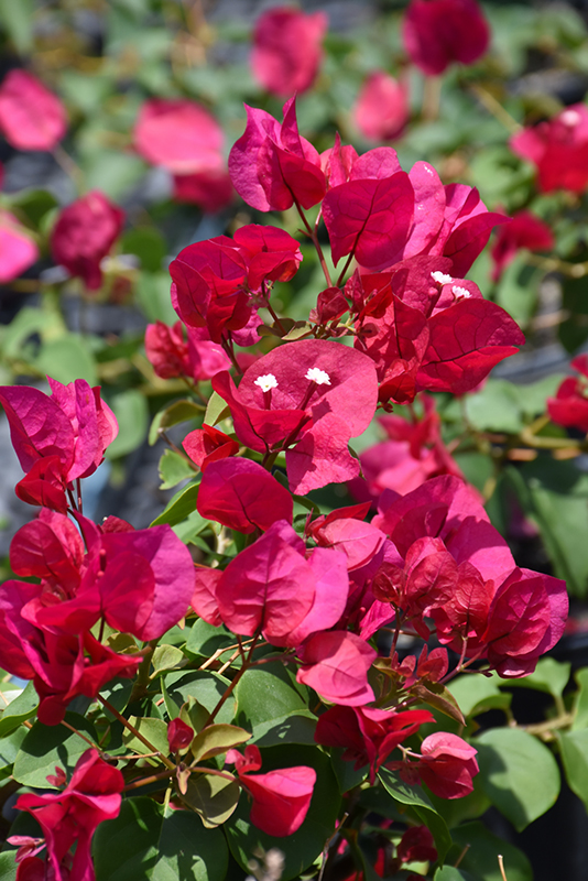 Barbara Karst Bougainvillea is covered in stunning fuchsia round flowers held atop the branches from late spring to mid fall. Its glossy pointy leaves remain dark green in color throughout the year.