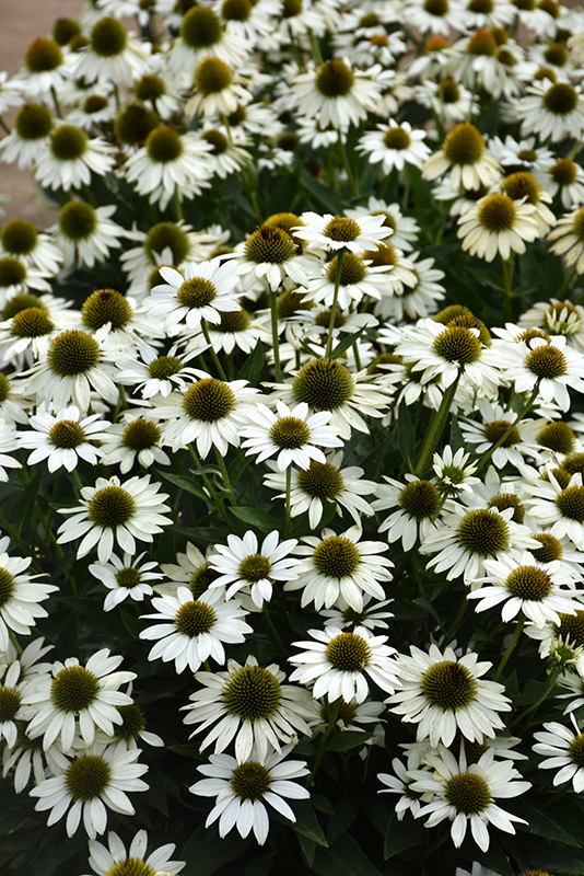 Kismet® White Coneflower will grow to be about 15 inches tall at maturity, with a spread of 18 inches. Its foliage tends to remain dense right to the ground, not requiring facer plants in front. It grows at a fast rate, and under ideal conditions can be expected to live for approximately 10 years. As an herbaceous perennial, this plant will usually die back to the crown each winter, and will regrow from the base each spring. Be careful not to disturb the crown in late winter when it may not be readily seen!