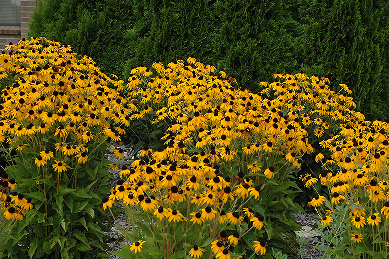 Goldsturm Coneflower has masses of beautiful gold daisy flowers with dark brown eyes at the ends of the stems from mid summer to early fall, which are most effective when planted in groupings. The flowers are excellent for cutting. Its serrated pointy leaves remain dark green in color throughout the season.